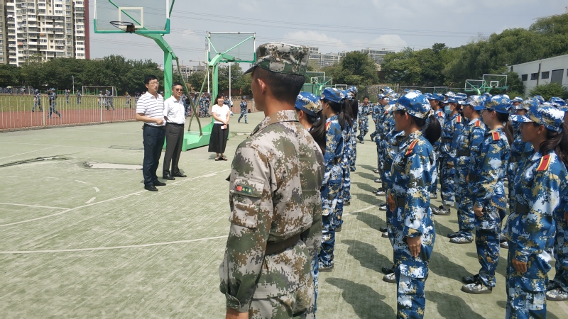胡院长详细询问军训教官、参训学生的队列动作、参训整体情况。同时对新生提出了三点要求:锻炼身体,强健体魄;磨练艰苦奋斗的意志,培养吃苦耐劳和严谨的精神;刻苦学习,认真钻研,为今后的大学生涯做好铺垫。
