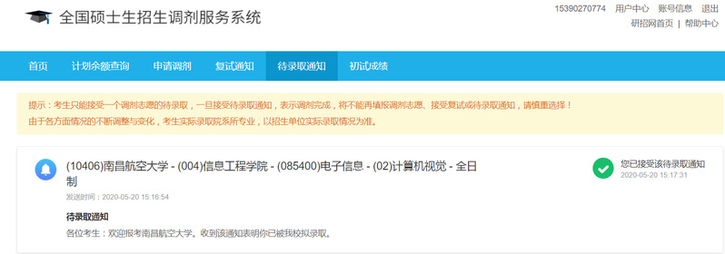 喜讯:beat36516级教育技术学专业学生姚天拟被南昌航空大学信息工程学院电子信息专业录取