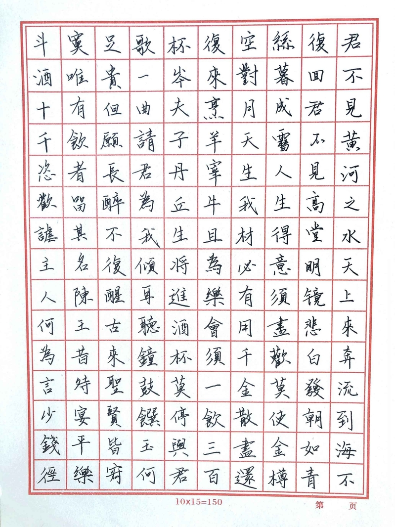 由于疫情影响,本次竞赛是由同学们各自在家中进行书写,可谓是一场别开生面的“云竞赛”。参赛同学们在规定时间中,从《将进酒》、《满江红》、《长恨歌》三篇凝聚了传统诗词魅力的古诗词中挑选一篇进行书写,从同学们各具风采笔迹中,透露出了独属于青春的热血和激情。