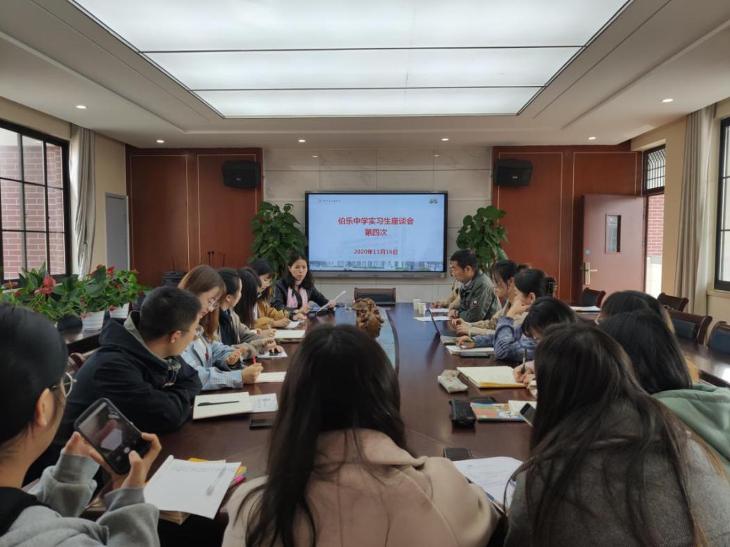 随后,张副院长与实习生召开了实习座谈会。会上,实习生们畅所欲言,纷纷就实习感受、体验与收获以及实习过程中存在的一些问题等向领导和老师做了汇报和反馈。张副院长认真聆听并语重心长地与学生进行交流。最后,张副院长对实习生提出了几点建议和要求,一是要求学生能够平衡学习和工作方面的关系,要做好时间管理;二是要求实习生按照实习手册上的规定较好地完成所有实习工作,如听课、上课、班主任工作等;三是在建议实习生在面临多个方向时,要学会选择,在遇到迷茫困惑时,要学会调解自己的情绪。四是要求实习生在实习结束后要及时回顾、总结,不断完善自我,为真正走上教学岗位打下坚实基础。
