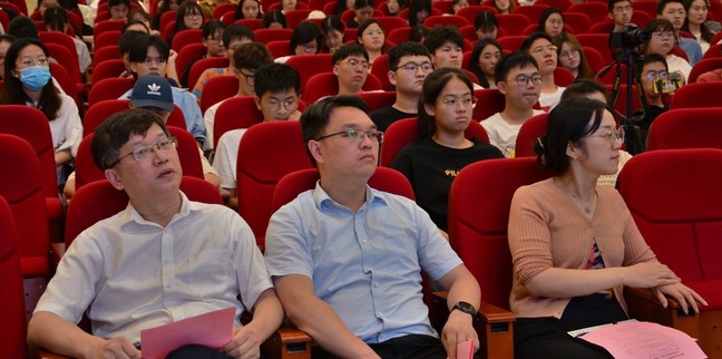 院长胡作进以《对自己要求再高一点》为题,结合自己的求学经历,鼓励同学们设定目标、做好职业生涯规划;并期望全体学生能“早准备、有毅力、能坚持”,寄语学院学生们在大学期间要有勤奋努力的学习态度、迎难而上的坚强品质。