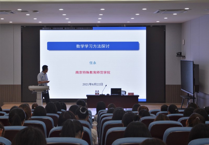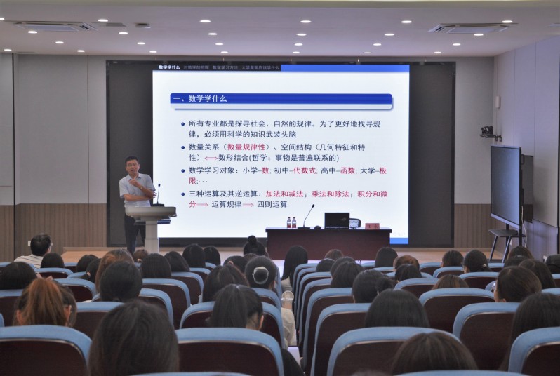 任永教授以“数学学什么”为切入点讲述了不同学习阶段下的数学学习重点;围绕“如何准确把握数学及其学科特点”、“数学学习方法”这两个方面,并结合自己多年学习和工作的经历,向同学们详细讲述了数学到知识体系架构,重点阐述了数学学习思维和方法的重要性;他强调,数学要牢固掌握数学的基本概念,善于分析和思考,注重总结与反思。关于数学专业的学习,任教授提出了三点建议:一是端正学习态度,培养良好的学习习惯;二是注重时间管理,提高学习效率;三是善于总结方法,掌握学科规律。