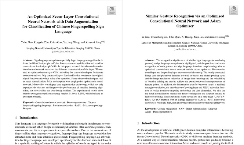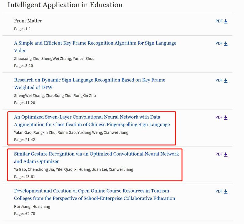 本次会议不仅关注人类教育相关的学习,还特别关注了机器学习技术。beat365在线唯一官网学生运用深度学习技术对中国手语识别展开研究,发表了两篇学术研究论文。其中,2018级学生高亚岚、高瑞娜、翁宇翔发表了论文“An Optimized Seven-Layer Convolutional Neural Network with Data Augmentation for Classification of Chinese Fingerspelling Sign Language”,用优化的七层卷积神经网络加数据增强技术来分类识别中国手语手指语。此外,2018级学生高雅、贾成冲、乔懿飞和2019级同学黄袭、雷娟合作发表了论文“Similar Gesture Recognition via an Optimized Convolutional Neural Network and Adam Optimizer”,用优化的卷积神经网络和优化训练算法实习了对相似手势的识别。目前,这两篇论文已经正式上线并出版,将被Ei Compendex, ISI Web of Science, Scopus, CrossRef, Google Scholar, DBLP等多个索引服务检索。(蒋贤维)