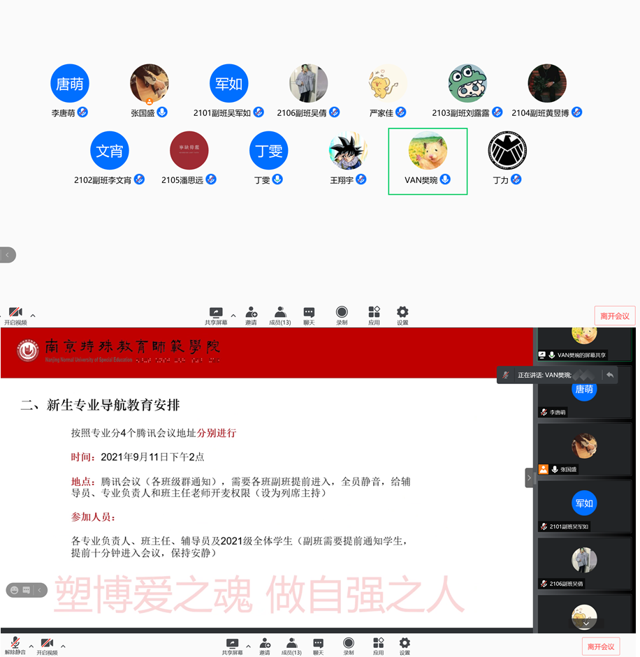 为做好2021级新生专业导航教育,明确班主任、辅导员的职责,提高新生线上教学工作水平,9月10日晚,beat365在线唯一官网召开了2021级新生班主任、辅导员培训会。培训会由学院辅导员樊琬主持,学院党总支副书记丁雯,2021级辅导员、班主任和副班参与此次培训会。
