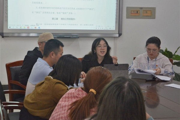 李唐萌老师带领支部党员同志学习了党的十九届六中全会主要文件精神和全国优秀共产党员事迹;与会学生党员根据学习内容,从担当社会责任、勇于开拓创新等多方面展开交流,进行了批评与自我批评;丁力老师从学生党支部建设出发,规范了学生党支部开展组织生活会的制度;樊琬老师对学生党支部学生党员参加暑期社会实践活动、参与疫情防控志愿活动等诸多成果进行了简要的总结,充分肯定了学生党员在各项活动中的作用,号召大家向模范学习,对学生党支部的建设以及学党员提出了要求和希望。