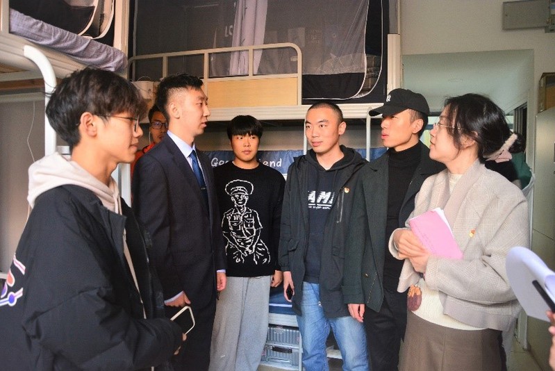 丁雯书记和支部党员老师与学生进行了面对面、心贴心的交流。在走访宿舍的时候,学生在与学院老师的聊天中纷纷说出了自己的困惑,各位党员老师耐心解答。走访期间,老师们还嘱咐同学们要努力学习专业知识,有困难和疑惑多和老师联系和询问,同时还仔细询问了毕业生的宿舍生活情况,督促同学们要注意安全,认真维持好宿舍卫生。此外,本次走访还对学生宿舍进行了环境检查与安全排查,重点检查了宿舍的用电安全、卫生状况、内务整理、寝室文化等情况,并对发现的问题提出整改意见。