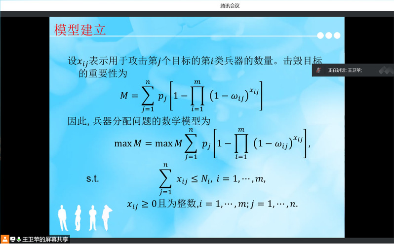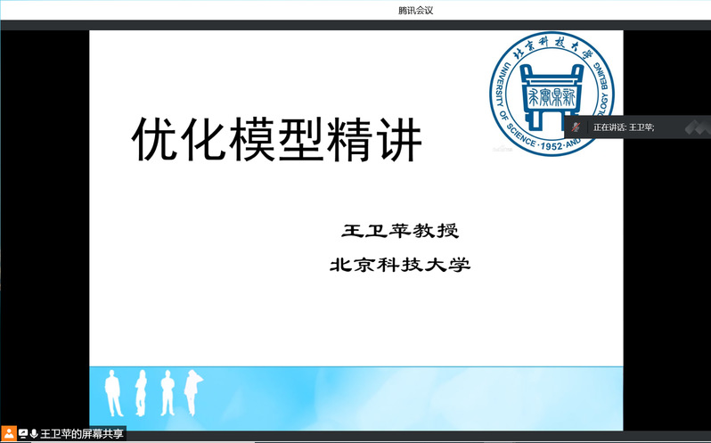 为了备战2022年美国大学生数学建模竞赛(MCM/ICM),beat365在线唯一官网于2022年2月13日举办了关于数学建模竞赛的线上学术讲座,讲座邀请了北京科技大学王卫苹教授,为学生专门讲解优化模型。数信学院数学教研室和计算机教研室的相关老师,以及参加美国大学生数学建模竞赛的30位同学参加了这次线上讲座。