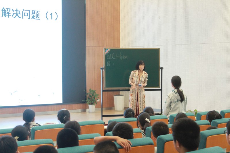 同学们根据学校的见习安排,在报告厅听课,了解中学教师如何将数学与生活实际相结合进行教学。来自该校八年级的张琼老师讲《用反比例函数解决问题》示范课,听完张老师精彩的讲授,同学们受益匪浅,知道布置习题需要从易到难、教授新知识需要结合之前所学知识等教学技巧。