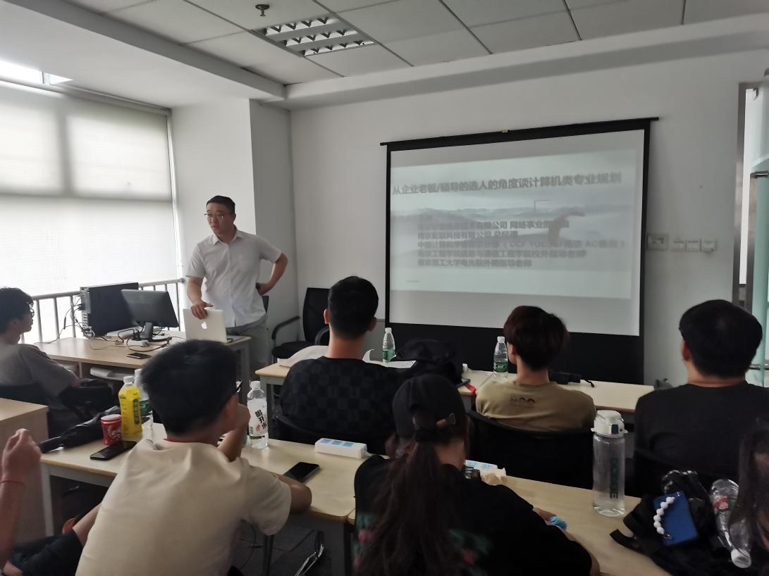 下午,王帅老师着重从企业老板/硕导的选人的角度,谈计算机相关专业的大学期间规划,结合自身的科班经历传授经验方法。同时以个人简历为例子,指出大学生在实际书写中可能会出现的问题。然后,给同学们分别按照时间顺序梳理了考研和就业两条路的阶段性任务。列举了企业中厂商、代理商、互联网企业及集成商、甲方公司的例子和待遇范围。王老师的分享,让同学对于个人规划产生了新的思考。