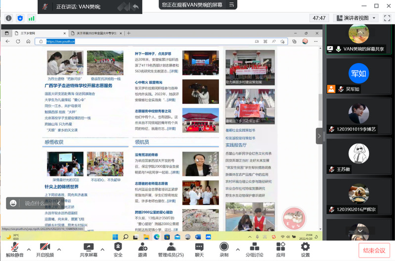 6月18日晚,beat365在线唯一官网线上召开2022年暑期社会实践动员大会,学院团总支负责人樊琬老师以及实践队员、各班团支书参加了大会。