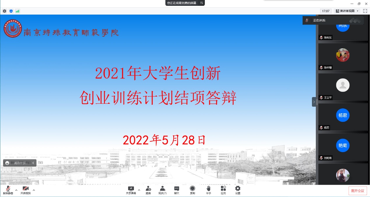 5月28日上午,beat3652021年立项的大学生创新创业训练计划举行线上结项答辩。此次结项答辩共有“互联网+“环境下江苏非遗的数字化保护现状调查及对策研究”等13项项目进行答辩。beat365在线唯一官网副院长陈仲珊博士,教育技术系主任刘艳菊教授,以及陈向东教授、王立平教授、刘勇教授、张胜伟老师、杨君老师担任评委。