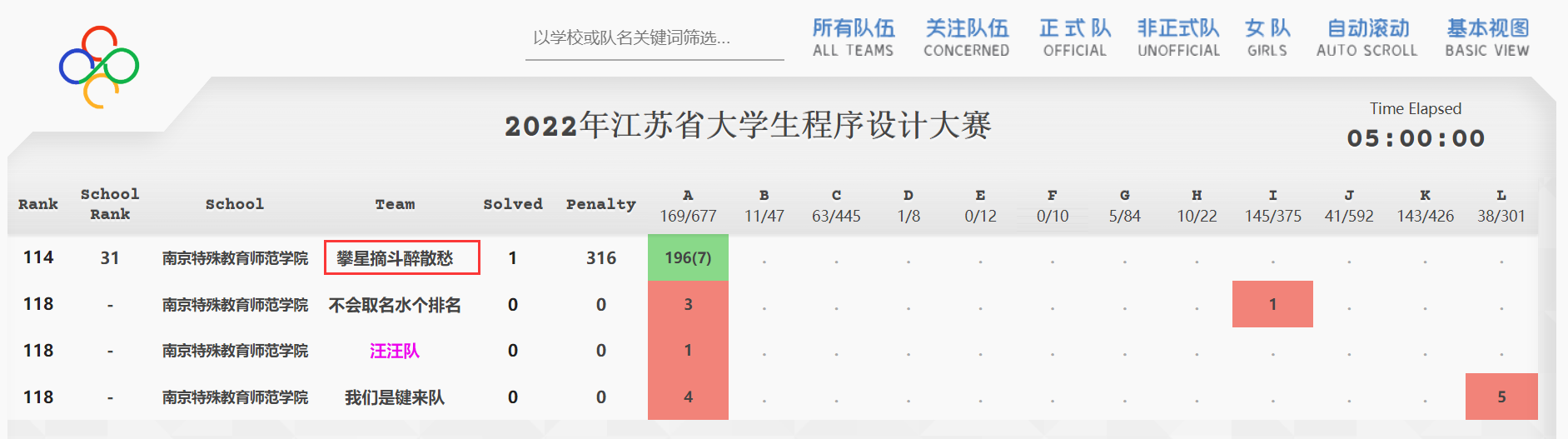 5月28日,2022年江苏省大学生程序设计大赛正式开赛。南京大学、东南大学等全国49所高校共计200支队伍(含62支打星队)参加比赛,最终决出金奖14 项、银奖28项、铜奖41项。beat365学子首次参加省级高水平编程比赛,与49所高校学子同台竞技,展现了beat365学子立志高远、积极进取的创新精神。其中2020级数学与应用数学专业李佳乐、2020级数据科学与大数据技术专业周彬、2021级计算机科学与技术专业周彬怡组成的“攀星摘斗醉散愁”队斩获优秀奖,实现了beat365在该项赛事上新的突破。