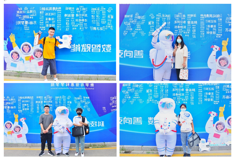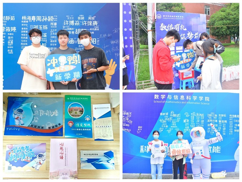 在迎新现场,学院给336名新生奉上一份特别的见面礼——幸运“盲盒”。“盲盒”礼品为“1+N”:1是每位新生都可收获学院精心设计宇航员造型的文创产品和宣传品,N为通过幸运抽奖获得的随机组成的礼品,含精美笔记本、台历、洗漱套装、洗衣液等有实用价值的精美礼品。此外,学院还用新生的名字组成了“叮咚,欢迎新同学”字样的大海报,受到了新生们的喜爱,新生完成报道后热情地与志愿者扮成的宇航员人偶进行合影。