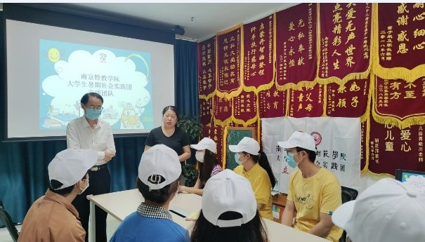 活动接近尾声,在8月31号这一天,殊博汇“追星”暑期社会实践团队在指导老师姚建东老师的带领下来到了江宁人中人特殊儿童幼儿园。今天非常幸运,能和数学与信息技术学院的另外一个团队的小伙伴们一起合作参加活动。首先,由机构老师向团队成员介绍“人中人”开创史,如今的发展现状,“人中人”的师资团队以及获得的一些荣誉成果。从老师的分享中得知,“人中人”个性化康复机构从1996年开始创立,至今已有26年,从一个小小的“婷婷语训部”到今天“人中人·个性化”,师资团队经验丰富,甚至有部分老师是这个机构开创至今的元老。一个个耀眼的荣誉成果,无不都在向人们证明这是一个十分成熟,有着自己独自特色的机构,值得每一个人信赖。