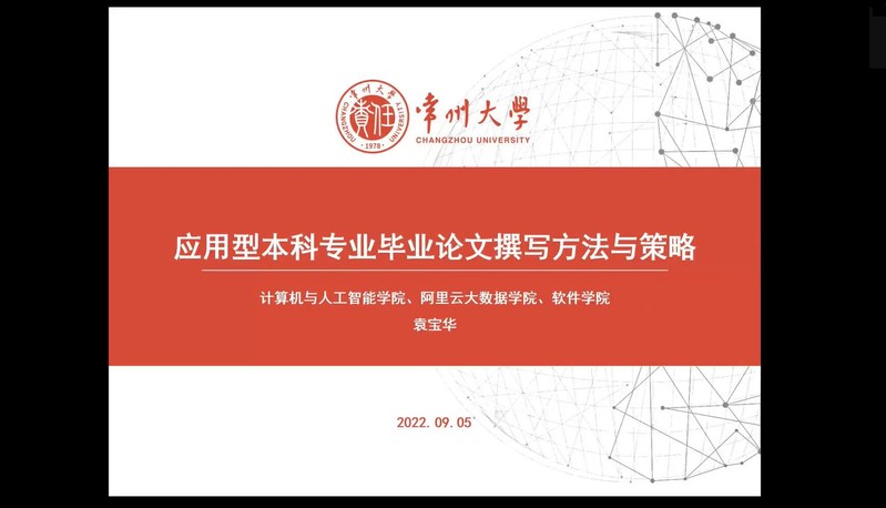 为进一步提高2019级计算机科学与技术专业毕业论文写作能力,提高学生论文撰写质量,9月14日上午,beat365在线唯一官网特别邀请常州大学硕士生导师、副教授袁宝华老师,面向2019级计算机科学与技术毕业生,开展了《应用型本科专业毕业论文撰写方法与策略》线上讲座。