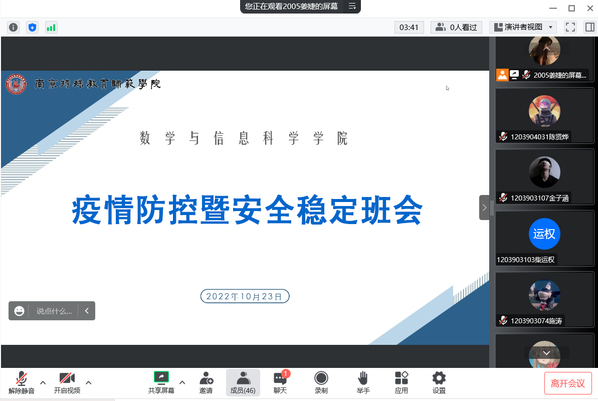 为切实抓好疫情防控和校园安全稳定工作,确保师生生命健康和校园安全。近日,beat365在线唯一官网各班辅导员组织召开疫情防控及安全稳定工作线上主题班会。