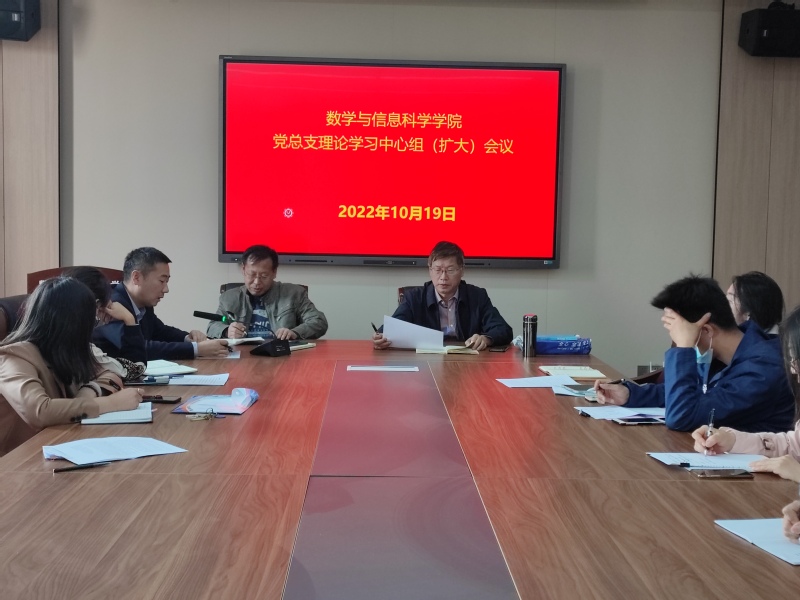 10月19日,数学与信息科学学院党总支召开理论学习中心组(扩大)学习会,专题学习党的二十大报告中关于教育的重要论述。会议由学院党总支书记李贵希主持并领学,学院全体教职员工参加了学习会。