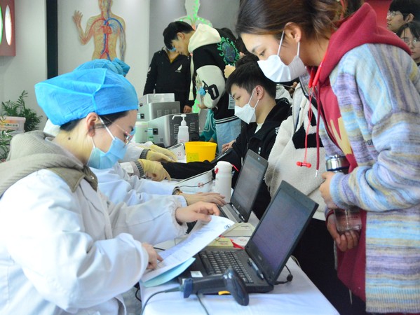 上午8时,前来献血的学生和市民便排起了长队。献血者在医护人员和志愿的带领下,依次完成个人信息登记、身体健康状况征询,经体检和血液初筛合格后分散就座,等待采血。在献血区,前来献血的同学纷纷挽起袖管,躺在采血椅上,献出自己的青春热血。志愿者在大家献血过后,及时上前搀扶,递上食物以及热水,为他们送去一份温情。
