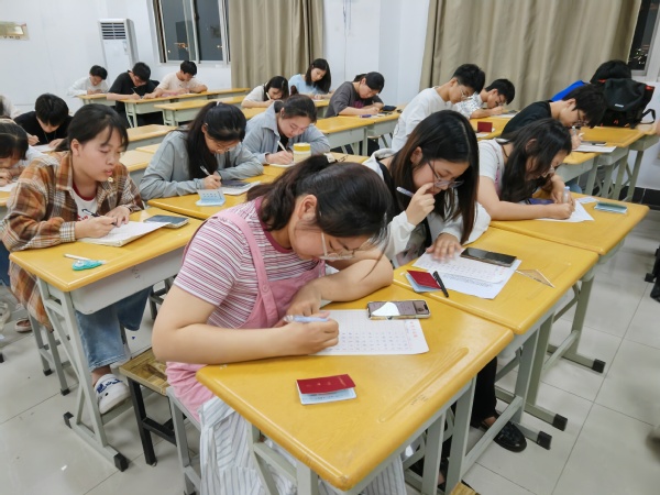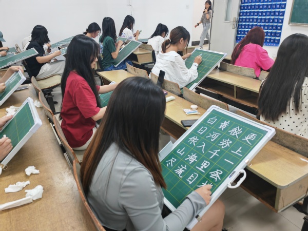 本次比赛邀请了美术与设计学院的老师为同学们进行赛前培训。老师们以生活中的案例为切入点,生动地讲解了中国书法史和字形演变的历史,展示了文房四宝的使用和名师大家楷书核心笔法的运用,解释了硬笔字和粉笔字的异同,并示范了不同类型汉字的书写方式。赛前培训让同学们领悟到了汉字的魅力,激发了同学们参加比赛的热情。