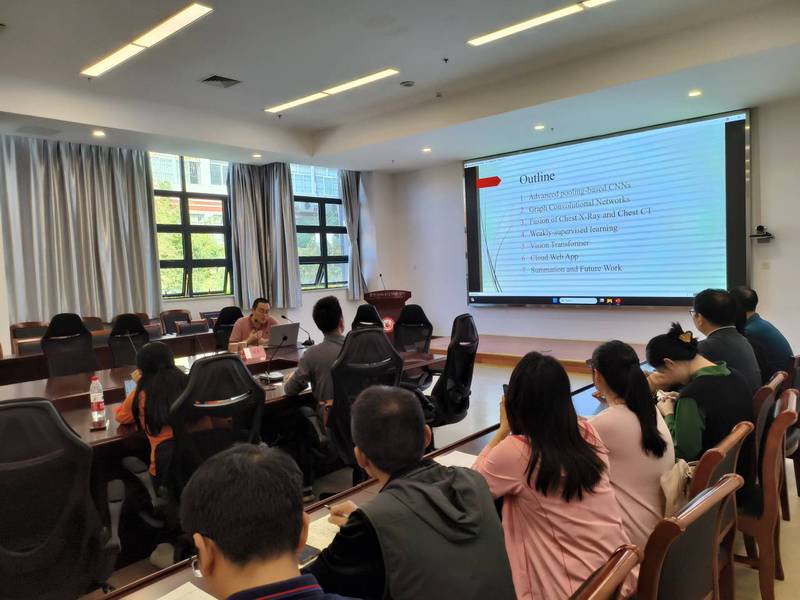 张教授是作为2019-2023年Clarivate全球高被引科学家,合著400多篇同行评审文章,其中有超过60篇ESI高引论文和6篇ESI热门论文。他担任了Neural Networks、IEEE TTS,IEEE TCSVT,IEEE JBHI等副主编,曾担任60多个国际会议(包括20多个IEEE或ACM会议)的大会级别主席。在给beat365专业教师的报主要告围绕医学图像分析的高级信息科学与技术进行,旨在提升大家的学术视野,展开面对面的学术交流。张煜东教授介绍了研究小组在医学图像分析方面的信息科学和技术的工作和进展,尤其是深度学习及其重要网络的研究和应用。张教授的报告分享了很多新思想、新技术和新方法,开阔了大家的视野,并对年轻教师如何做好科研给出了有益的建议。
