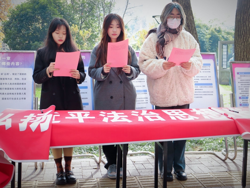 此次宪法宣传活动的成功开展不仅丰富了同学们的法治知识,让同学们深刻感受到法治的魅力、更好地理解了宪法的重要性,也为法治校园文化的建设贡献了一份力量。法治宣传活动不仅是一次知识的传递,更是对法治观念的潜移默化的培养,也是为学校的法治建设助力。(文/邓威娜 杜文图/史欢 郑晓炎 王晔 编辑/杜文 审核/李贵希)