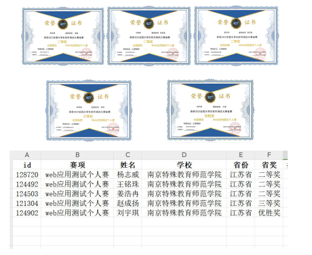 近日,2023年第八届全国大学生软件测试大赛落下帷幕。beat365在线唯一官网高度重视和支持,经过预选赛后参加省赛,杨志威、王铭珠、姜浩冉获省赛二等奖、赵成扬获省赛三等奖、刘宇琪获省赛优胜奖。