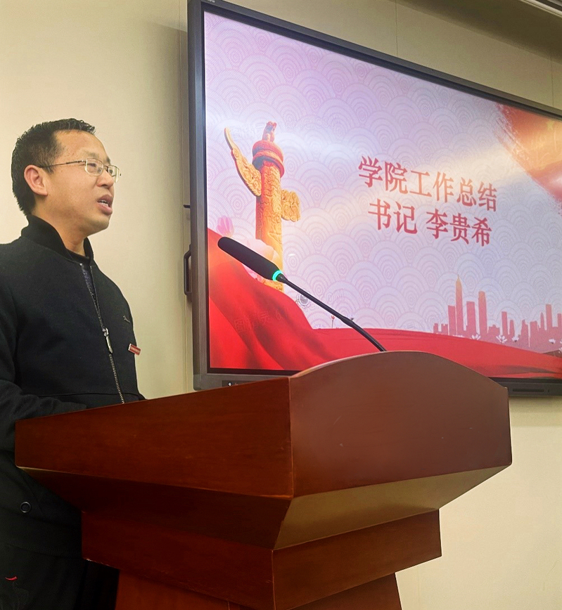 党总支书记李贵希在总结讲话中向一年来辛勤工作的广大教职员工表达了敬意,并指出,2023年是全面贯彻党的二十大精神的开局之年,是落实学校第二次党代会精神、全面推进改革创新的实践年,全院教职员工以高度负责的主人翁意识不仅打赢了评估攻艰战,也在 “高质量党建引领高质量发展”方面,成绩斐然。学院从此将进入一个全新的历史发展阶段。