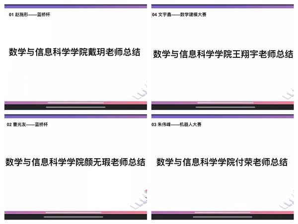 在教师指导环节,戴玥老师分析了各数字媒体相关比赛的获奖概率,强调了将需将技术与艺术融合的重要性;王翔宇老师向同学们详细介绍了数学竞赛、数学建模大赛和教师基本功大赛,鼓励同学们在比赛中提升专业能力和综合素养;颜无瑕老师从网络安全竞赛谈到了维护网络安全对于国家和个人的重要性;付荣老师则带领同学们学习了人工智能相关赛事及比赛流程,鼓励同学们在比赛中不断突破。