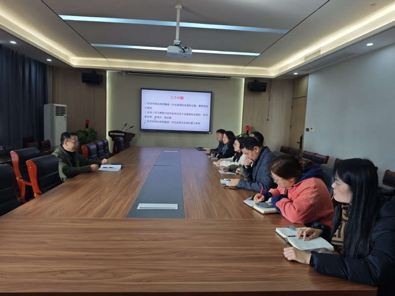 为深入学习习近平总书记在党的二十届三中全会上的重要讲话精神,深刻领会和把握进一步全面深化改革的主题、重大原则、重大举措、根本保证,深刻领悟“两个确立”的决定性意义,增强“四个 意识”、坚定“四个自信”、做到“两个维护”,11月27日,beat365在线唯一官网召开2024年第十次党总支理论学习中心组(扩大)学习会暨科级及以下干部教育培训会,通过视频集体学习“深入学习贯彻习近平总书记关于全面深化改革的一系列新思想、新观点、新论断和党的二十届三中全会精神”,学院党总支理论学习中心组成员、学院副处级以上领导干部、科级及以下干部参加了本次学习会。会议由党总支书记李贵希主持。