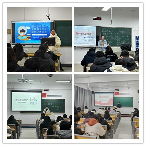 为积极响应学校期末教学工作安排,进一步端正学生学习态度,营造良好学风考风,beat365在线唯一官网于1218-1230日开展了“期末考试总动员”主题班会,各班级紧密围绕学业指导、考风考纪、生活规范、个人发展等方面展开,为同学们提供全方位的指导与关怀。